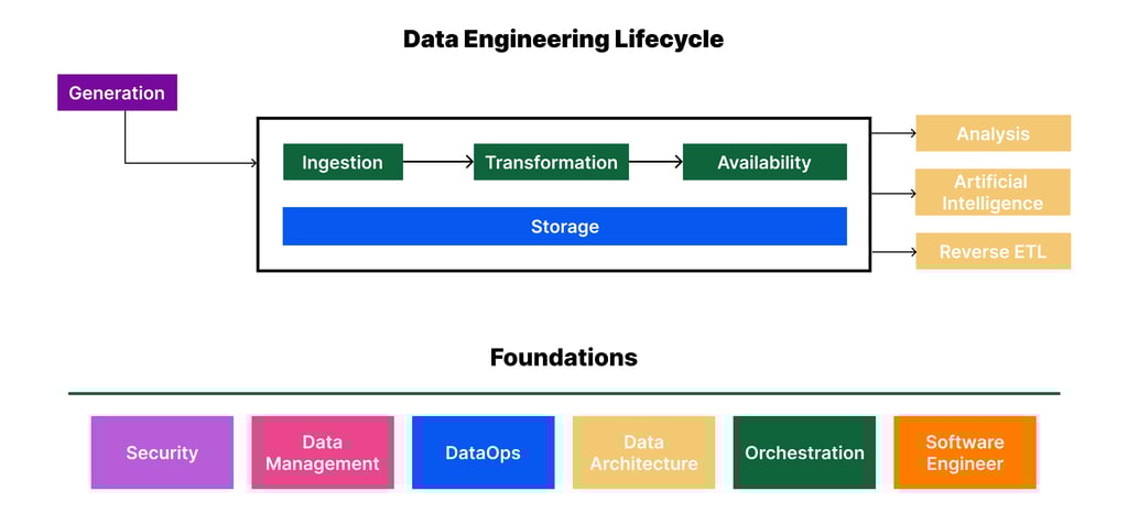 Below, we can see an image that illustrates a bit about the process of the data engineering lifecycle: